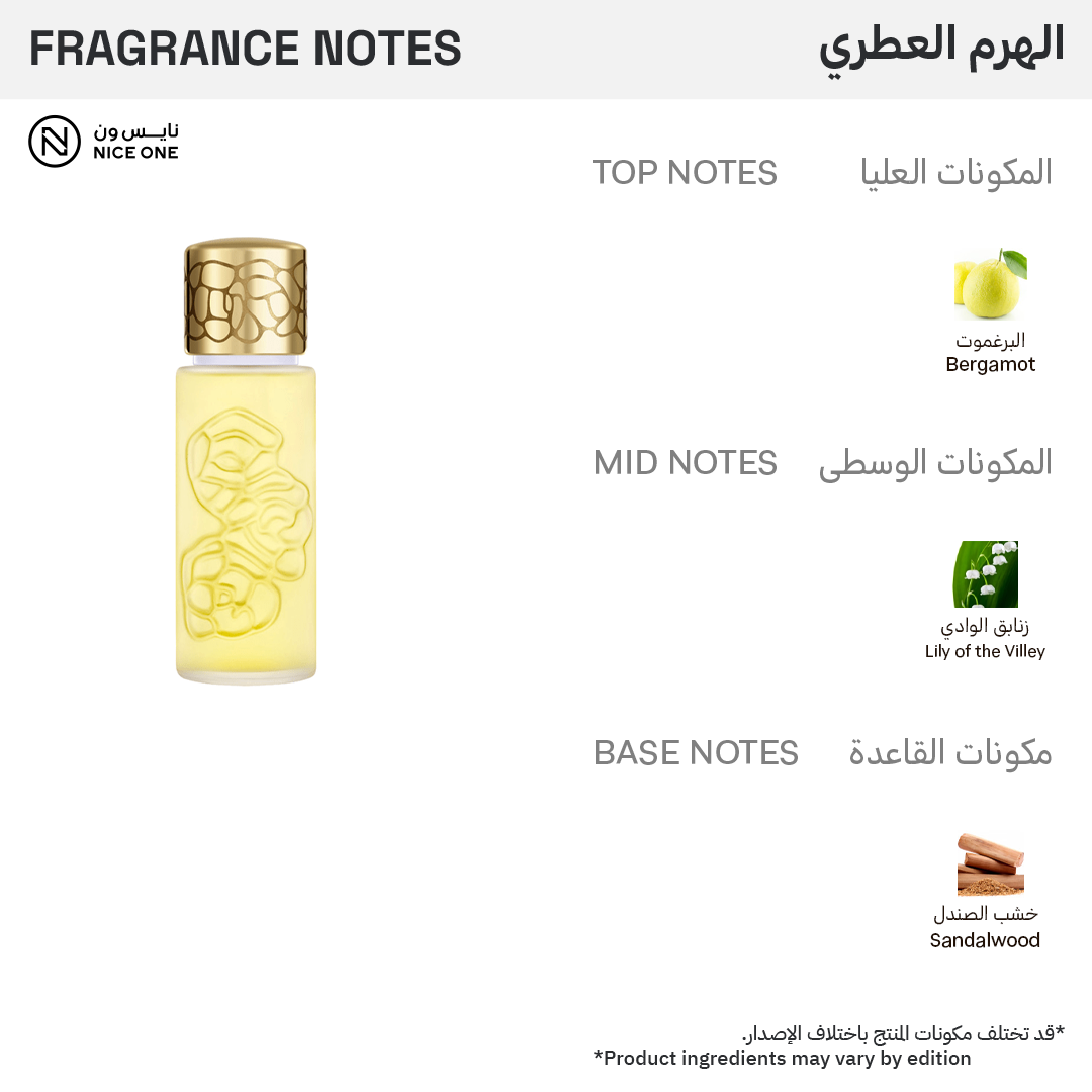 - المكونات الوسطى: زنبق الوادي، الورد، الياسمين