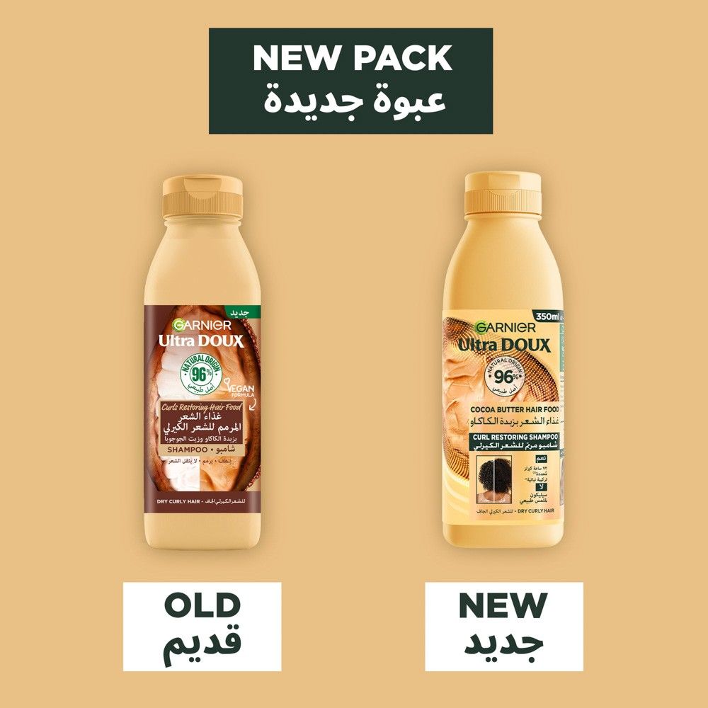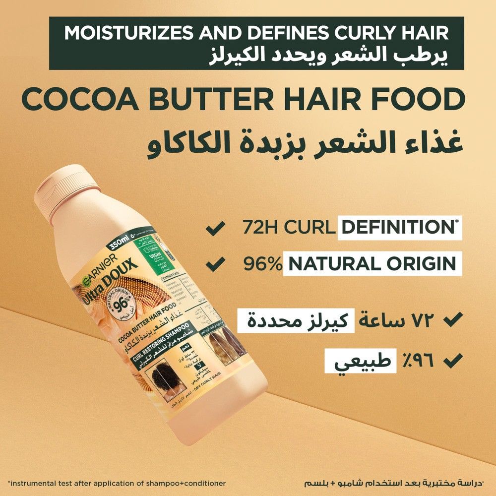 غارنييه ألترا دو شامبو مغذي للشعر بزبدة الكاكاو لاستعادة تجعيدات الشعر الجاف – 350مل