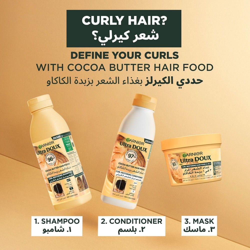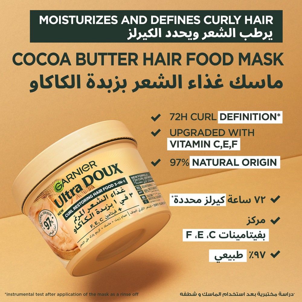 غارنييه ألترا دو قناع الشعر المغذي 3 في 1 بزبدة الكاكاو – 390 مل