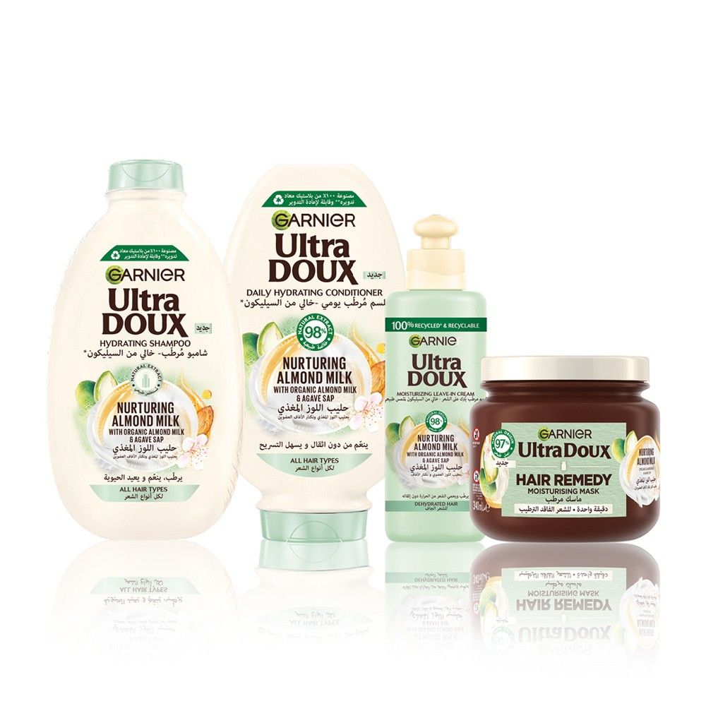 احصلي على شعر صحي ورائع مع بلسم الترا دو مرطب يومي للشعر بخلاصة حليب اللوز المغذي من غارنييه.