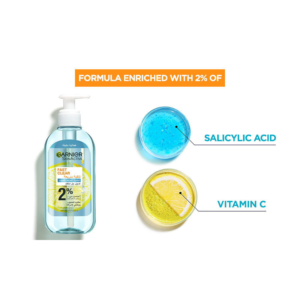 غارنييه سكين اكتيف غسول جل للتنظيف السريع بحمض الساليسيليك – 200 مل