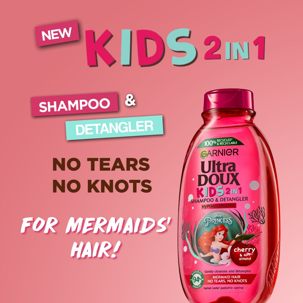 جربي شامبو غارنييه بالكرز المستوحى من فلم حورية البحر واجعلي وقت الاستحمام سهل وممتع لأطفالك.تركيبة 2 في 1 تنظف الشعر وتفك تشابكه في خطوة واحدة.غني برائحة الكرز الزكية لتجربة استحمام مبهجة.لطيف على شعر الأطفال، مما يجعل من السهل تمشيطه والتحكم فيه.يترك الشعر ناعم وخالي من التشابك.