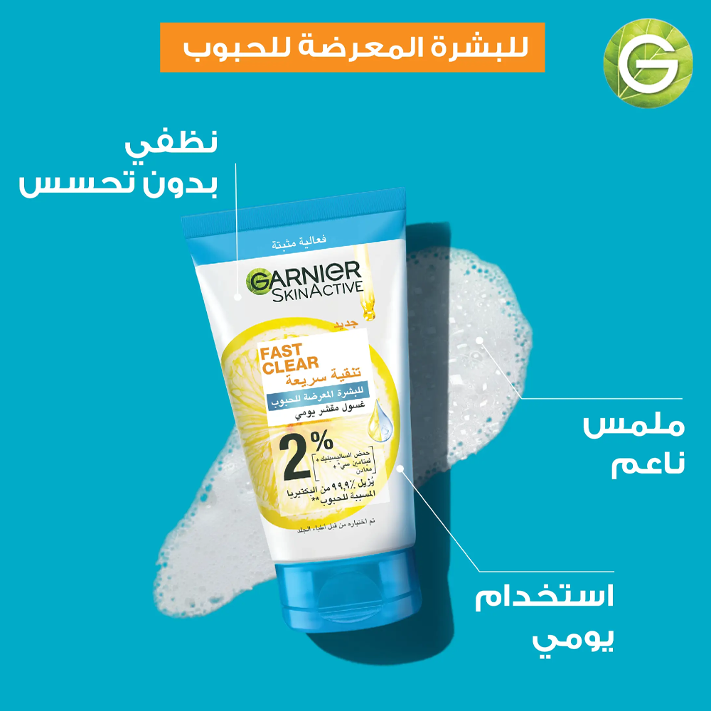 استمتعي بغسول يومي ينظف بشرتك المعرضة لحب الشباب ويعالجها ويغذيها من غارنييه.