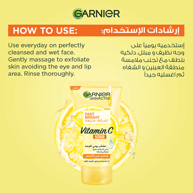 غارنييه مقشر الوجه سكين اكتيف إشراقة سريعة فيتامين سي والليمون – 150مل