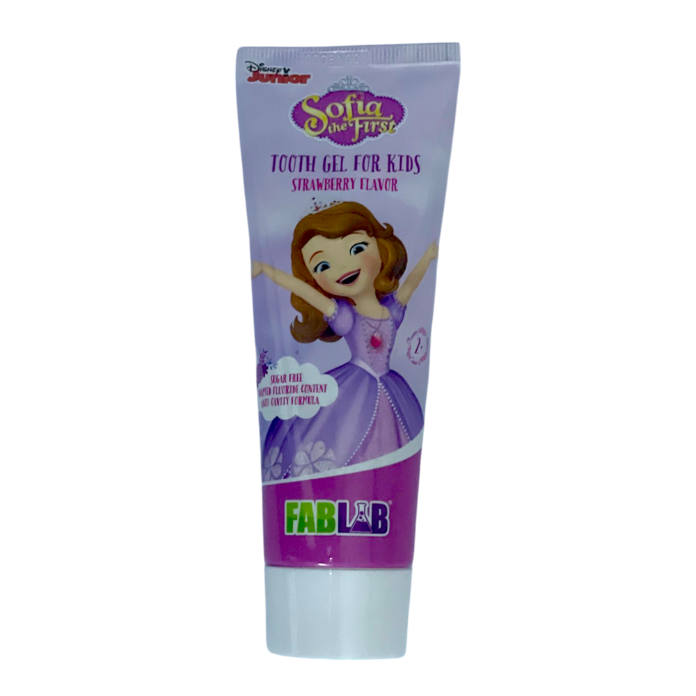 فاب لاب معجون اسنان ديزني صوفيا بنكهة الفراولة للأطفال . تم تصنيعه بدون سكر وبكميات مناسبة من الفلورايد للأطفال أقل من 7 سنوات. يحافظ جل الأسنان على انتعاش الفم ونظافته، كما يعمل على حماية الأسنان من التسوس ويقوي نموها. يتميز جل الأطفال بتركيبة آمنة وسهلة الاستخدام، ويأتي بعبوة مميزة بشخصيات كرتونية تناسب الأطفال.