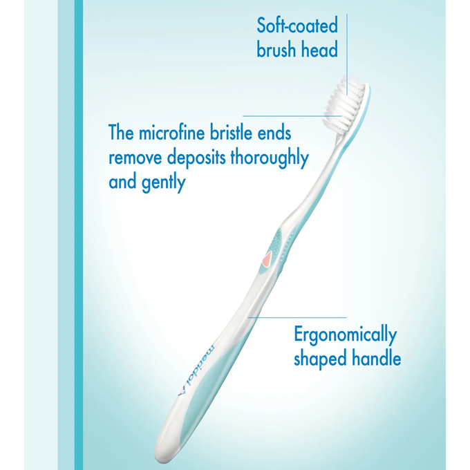 تم تصميم فرشاة الأسنان ميريدول خصيصا للثة الحساسة و الحالات التي تتطلب إصلاح اللثة.تتميز الفرشاة بمكونات من الحرير جديدة تمامًا.فرشاة ناعمة للعناية باللثة الحساسة المعرضة للنزيف.تصل بسهولة إلى جميع أنحاء الأسنان.تضمن التنظيف العميق و في نفس الوقت بدون أن تضر اللثة أو الأسنان.