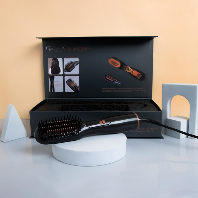 يعمل على تجفيف الشعر من الماء وتصفيفه في آن واحد حيث يتميز بفرشاة تنعيم وتجفيف وفرد وتشكيل الشعر وتلميعه في منتج واحد.