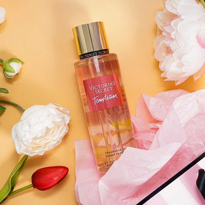 انغمسي في عالم من الجاذبية والأنوثة مع عطر الجسم تمبتايشن من فيكتوريا سيكريت.