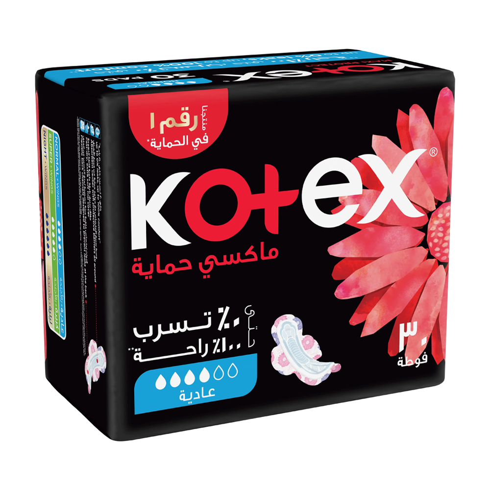 فوط صحية ماكسي كومفرت & كلين حجم عادي بالأجنحة من كوتكس – 30 قطعة