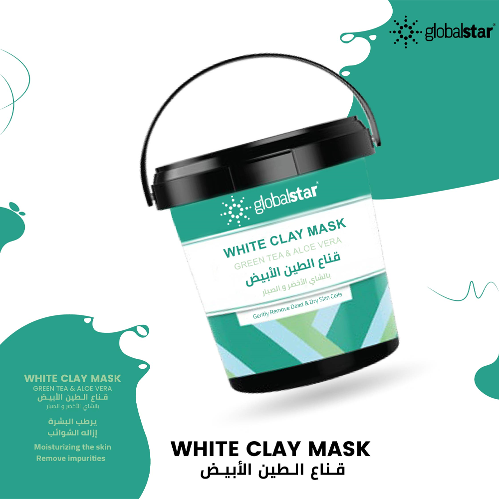 قناع الطين الابيض بالشاي الاخضر و الصبار من جلوبال ستار – 600 جم