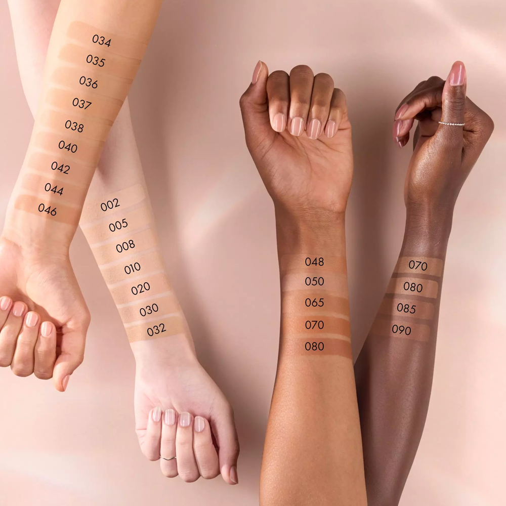 ماء، دايميثيكون، تالك، ثلاثي ميثيل سيلوكسي سيليكات، ثنائي ميثيكون PEG-10، نياسيناميد، إيزودوديكان، سيليكا، جلسرين، سيتيل PEG/PPG-10/1 دايميثيكون، توكوفيرول، كلوريد الصوديوم، ثنائي ميثيكون الهيدروجين، كبريتات المغنيسيوم، سيتيل الكحول، ثنائي ميثيكون/فينيل دايميثيكون كروس بوليمر، ديستيرديمونيوم هيكتوريت، ميثيكون، كربونات البروبيلين، ثلاثي إيثوكسي كابريليل سيلاني، إيثيل هكسيل جلسرين، بنتايريثريتيل تيترا-دي-تي-بوتيل هيدروكسي هيدروسينامات، هيدروكسيد الألومنيوم، فينوكسي إيثانول، ديهيدرو أسيتات الصوديوم، سوربات البوتاسيوم، حمض البنزويك، حمض ديهيدرو أسيتيك، العطر، CI 77491 (أكاسيد الحديد)، CI 77492 (أكاسيد الحديد)، CI 77499 (أكاسيد الحديد)، CI 77891 (ثاني أكسيد التيتانيوم).