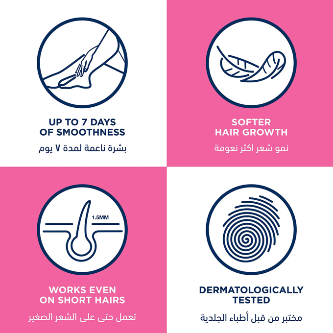 • يزيل حتى أصغير الشعيرات و يترك البشرة برائحة عطرية خفيفة.