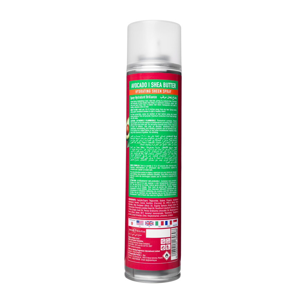 بخاخ ترطيب و لمعان يعيد إلى الشعر زيوته الطبيعية، مما يمنحه لمعانًا طبيعيًا.غني بزبدة الأفوكادو والشيا التي تساعد على ترطيب الشعر وتقوية الأطراف المتقصفة وترويض الشعر المجعد.يجعل الشعر أكثر قابلية ويضيف إليه لمعانًا صحيًا وجذابًا.