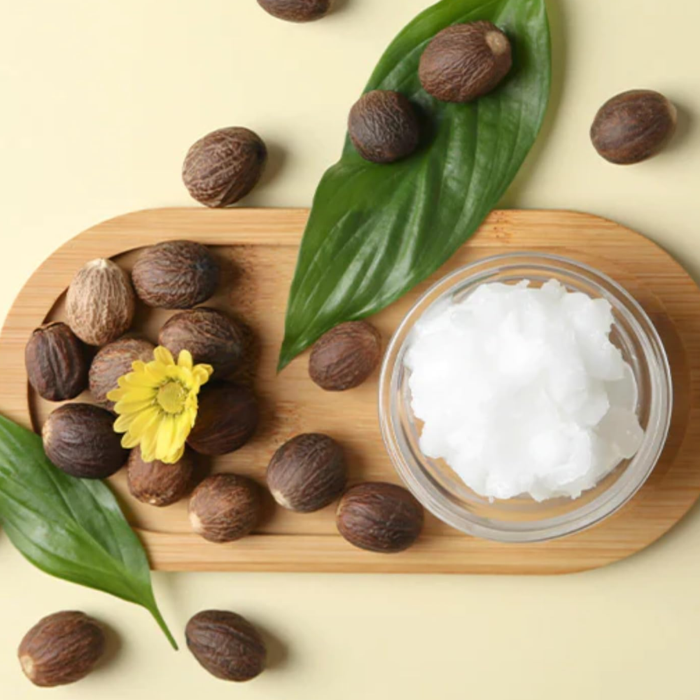 زبدة الشيا مليئة بالأحماض الدهنية الأساسية والفيتامينات A وE وF وغيرها من العناصر الغذائية التي تغذي البشرة وترطبها بعمق.