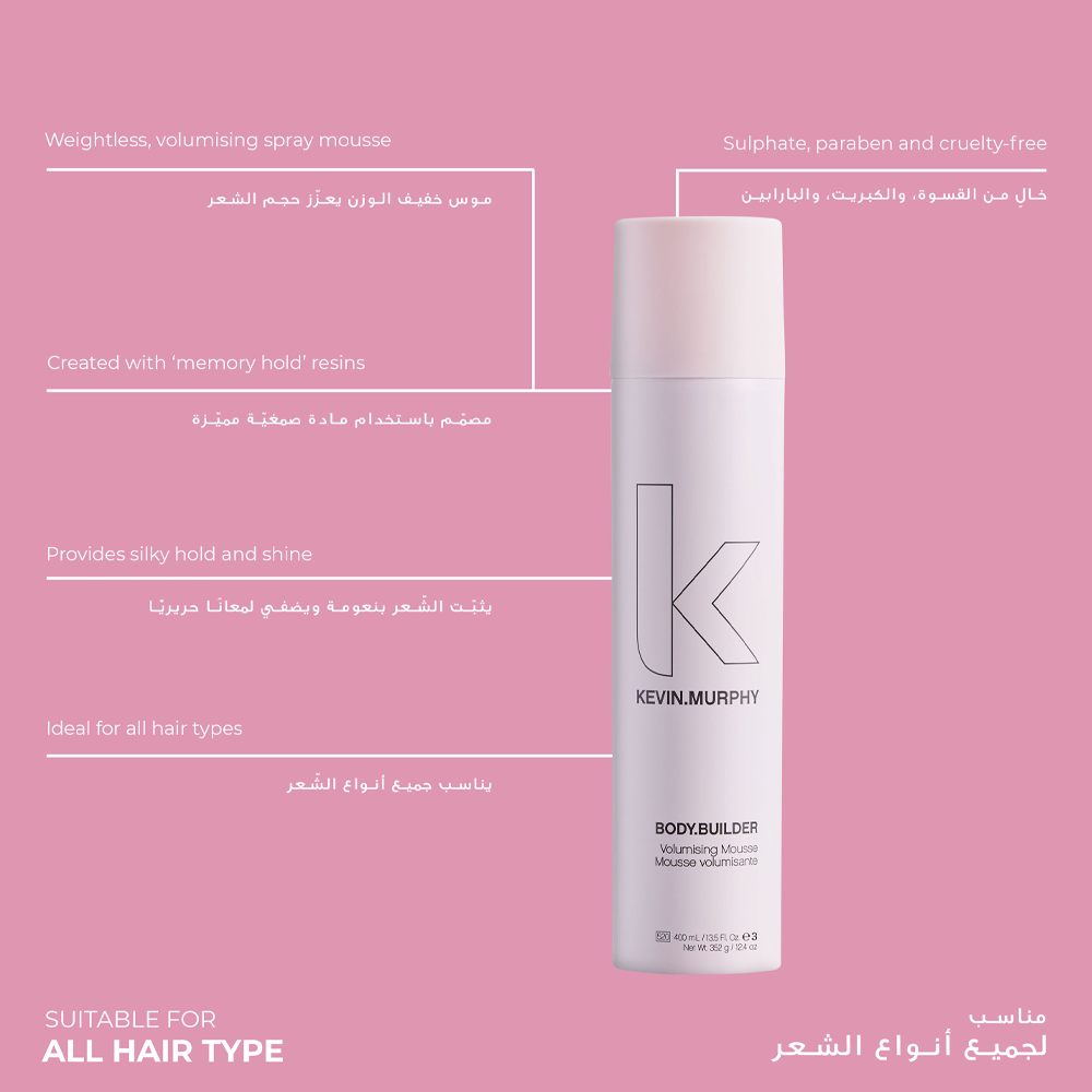 ابتكر كيفن مورفي موس بودي بيلدر لتكثيف الشعر لتوفير الحجم والكثافة لشعرك دون أن يثقل أو يجعله جامدًا