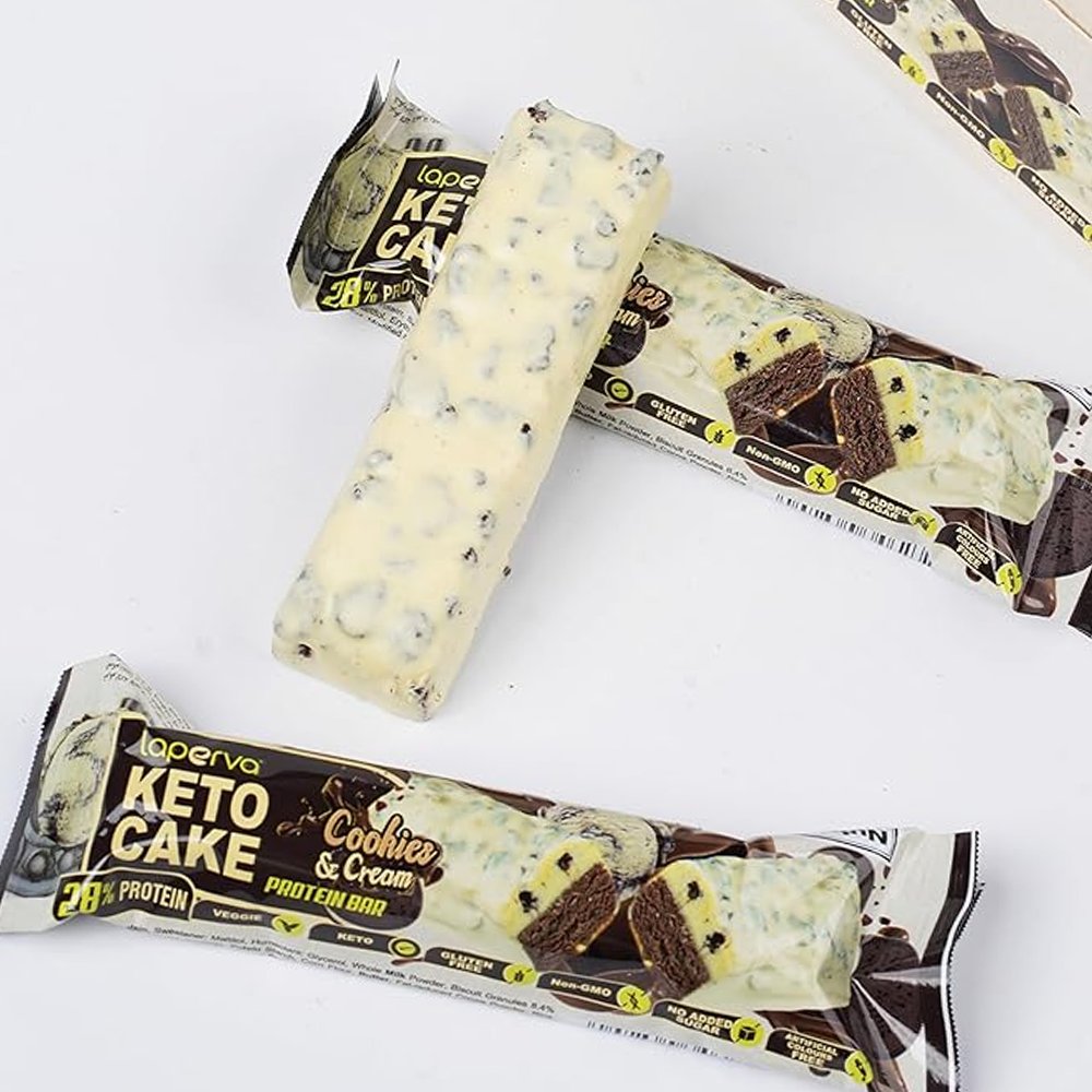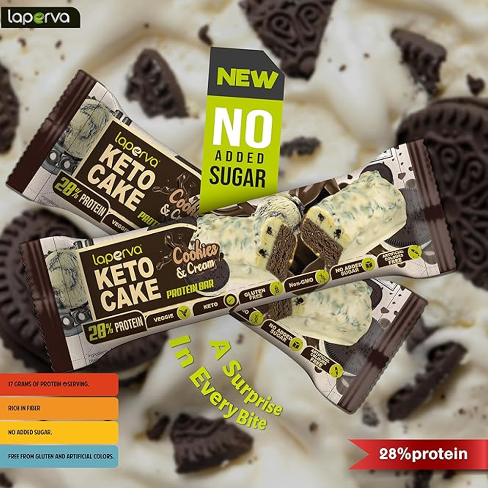 كيك البروتين كيتو كيك من لابيرفا يقدم نكهة لذيذة من الكوكيز والكريمة، وهو خيار مثالي كوجبة خفيفة غنية بالبروتين.