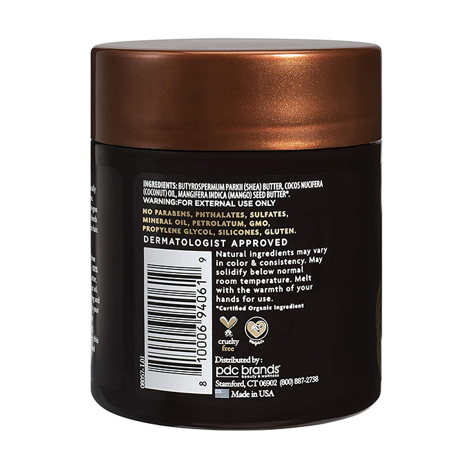 يوفر المزيج الخام المهدئ مع زبدة المانجو من كانتو رطوبة عميقة وطويلة الأمد من الرأس إلى القدمين.عبارة عن مزيج من ثلاثة مكونات خام طبيعية فائقة الترطيب زبدة المانجو العضوية النقية والمعتمدة بنسبة 100% بالإضافة إلى زبدة الشيا النقية وزيت جوز الهند بنسبة 100%.استمتعي بخصائص زبدة المانجو النقية المهدئة، والتي تزيد من مرونة البشرة وتقوي بصيلات الشعر لتقليل التقصف وتساقط الشعر. تساعد هذه التركيبة الطبيعية على تعزيز إشراقة بشرتك لتتركها تبدو متجددة ومنتعشة. يساعد هذا المزيج على تخفيف جفاف الجلد وفروة الرأس ويرطب الشفاه المتشققة.