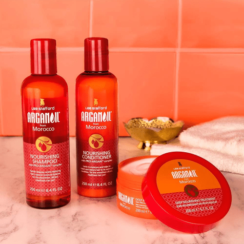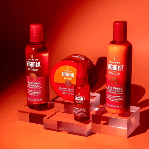 بلسم لي ستافورد بزيت الأرغان من المغرب يغذي الشعر بمركب برو-أرغان والكيراتين لترطيبه وتنعيمه.