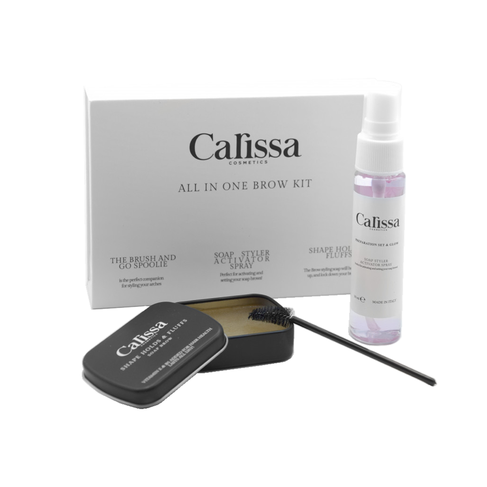 تتكون من صابونة حواجب وفرشاة وبخاخ يعمل على تثبيت الحواجب بفعالية تدوم حتى ساعات طويلة.