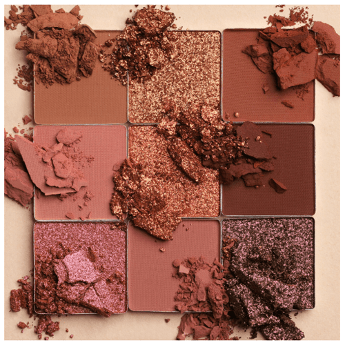 - مجموعة ظلال عيون صغيرة الحجم مكونة من 5 الوان مطفية و4 الوان لامعة مناسبة لإطلالة صباحية او مسائية.