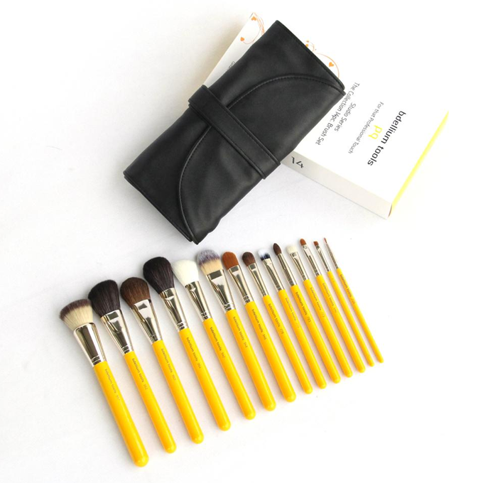 تحتوي على 14 فرشاة توفر جميع احتياجاتك للمكياج، بالإضافة لحقيبة أنيقة رول اب تستخدم لتخزين وحماية الفرش.