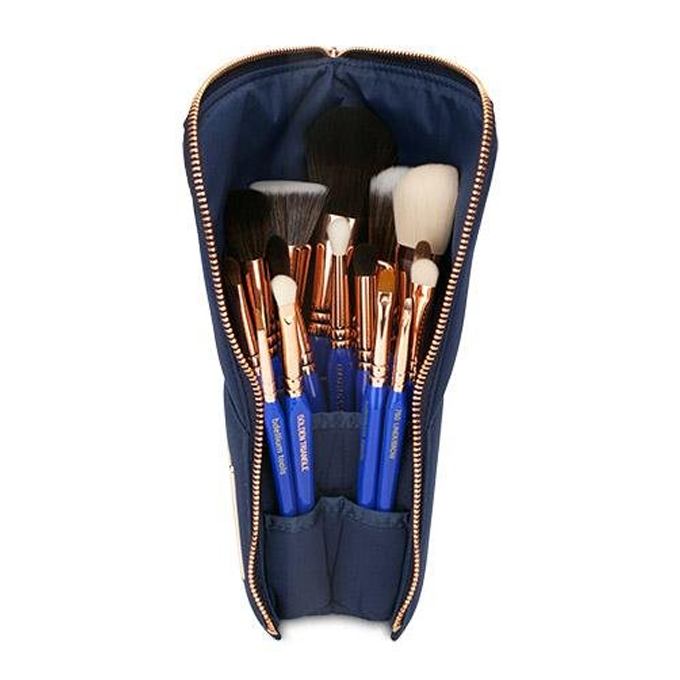 تحتوي على 15 فرشاة توفر جميع احتياجاتك للمكياج، بالإضافة لحقيبة أنيقة تستخدم لتخزين وحماية الفرش.