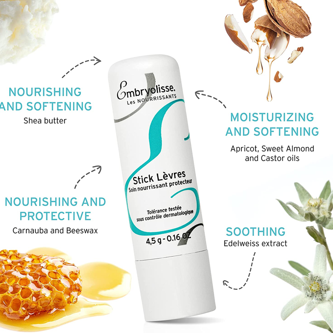 - غني بزبدة الشيا واللوز الحلو وزيت الخروع والمشمش وشمع كرنوبا وشمع العسل لتحصلي على شفاه ناعمة وصحية.