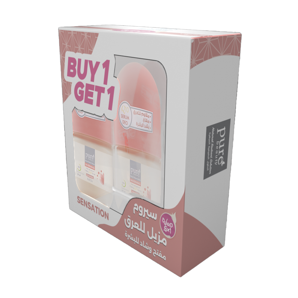 مزيل عرق رول سنسايشن لتفتيح البشرة وشدها بسيروم Q10 من بيور بيوتي – حبتين