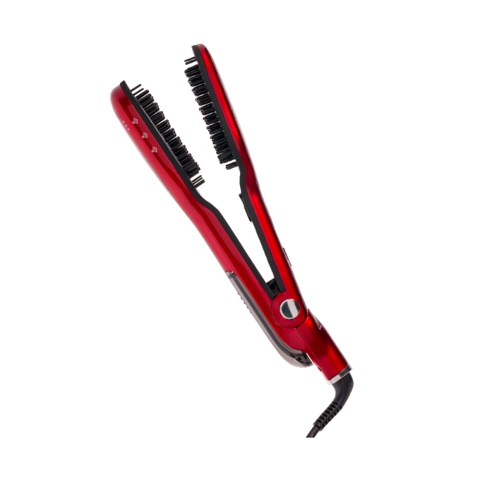 مشط مصمم بفرشاة تحمي الشعر من الشد او التلف وتوزع الحرارة بالبخار على كافة الشعر بالتساوي.