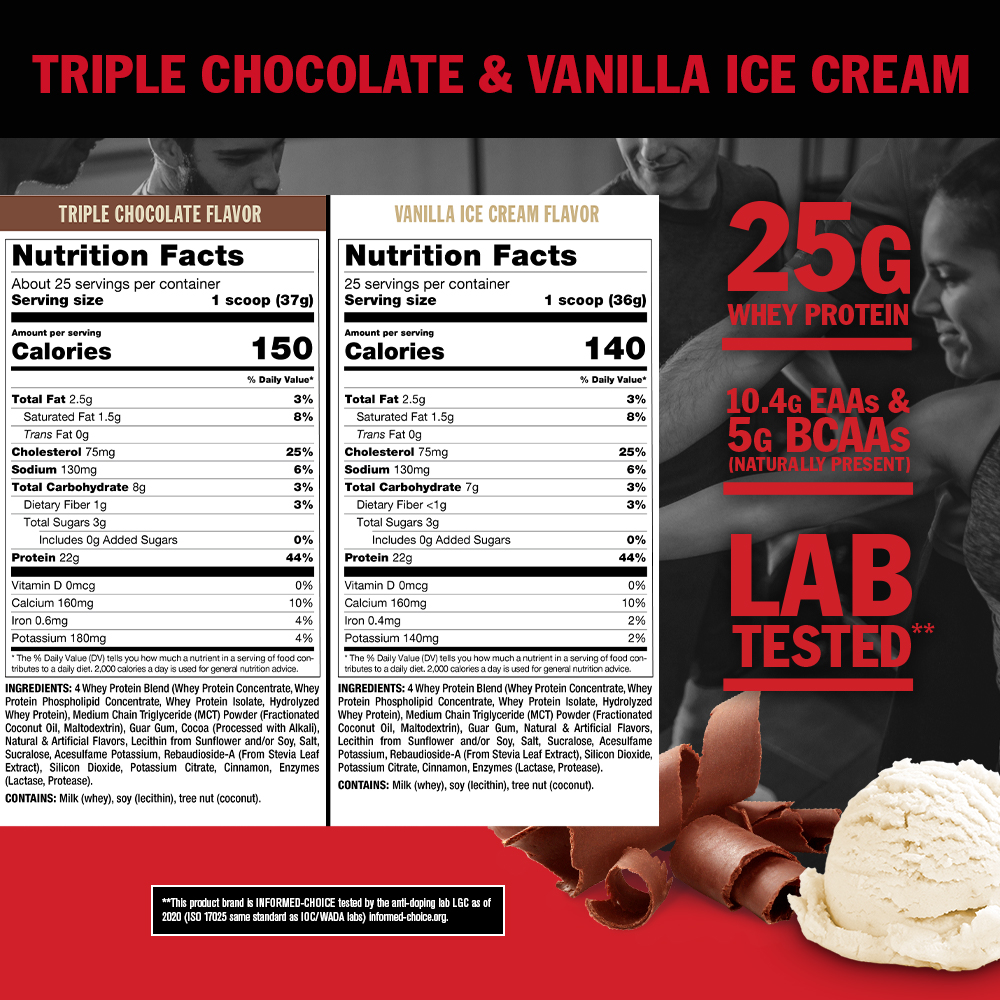 - 22 جرام من بروتين مصل اللبن النقي في كل حصة.