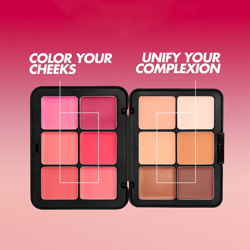 تحتوي على 6 درجات من الفاونديشن الكريمي و6 درجات من البلاشر الكريمي لتوحيد وتحديد وتوريد خدودك.