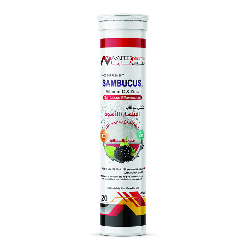 مكمل غذائي أقراص فوارة يحتوي البيلسان الأسود وفيتامين سي والزنك.