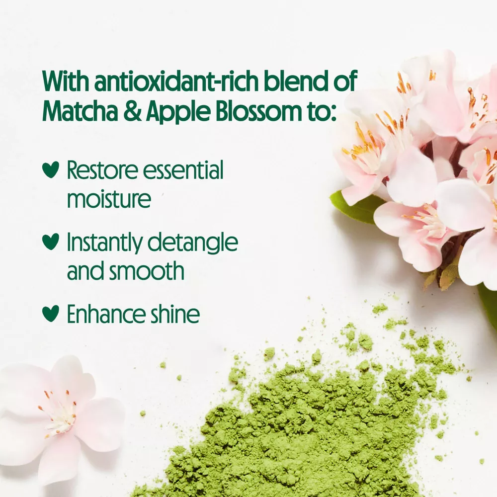 تم تصميم البلسم المغذي للشعر بشاي ماتشا الأخضر وزهرة التفاح البري لترطيب وتغذية شعرك بعمق مع تعزيز صحته العامة.