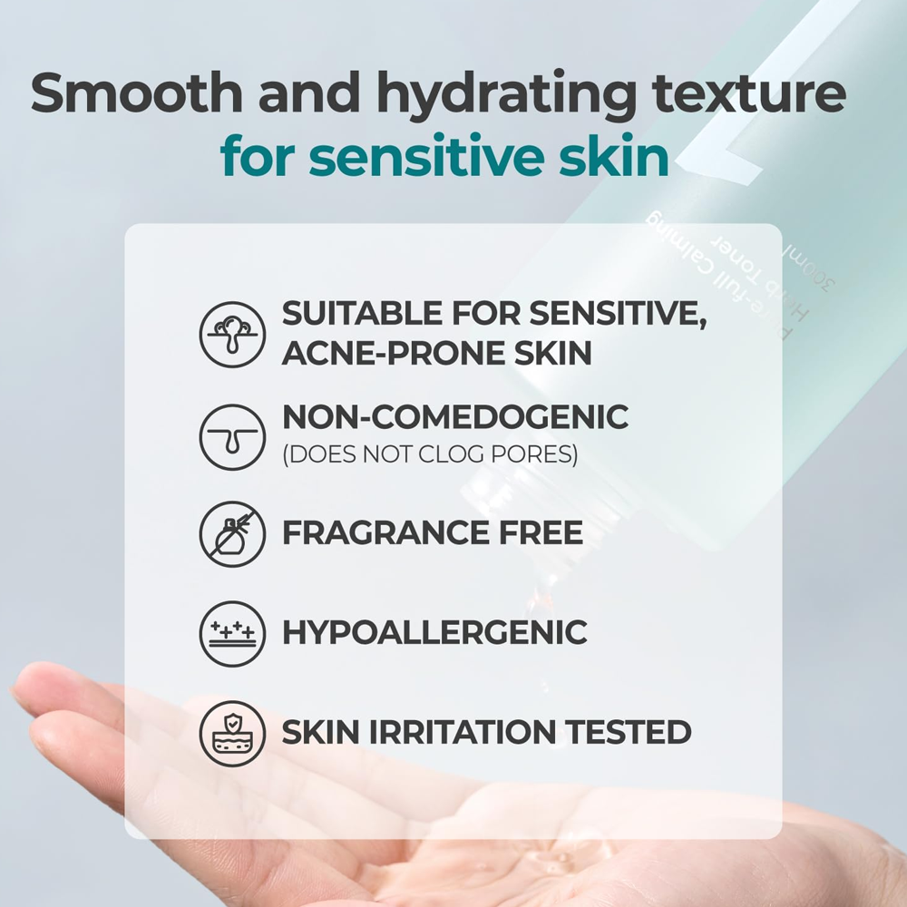تونر غني بـ مستخلص السيكا، ومستخلص جذر عرق السوس لتهدئة تهيج البشرة وتقليل احمراراه.