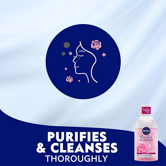 استمتعي ببشرة ناعمة وملساء ونظيفة بدون أي عيوب أو شعور دهني مع مزيل المكياج بماء الورد من نيفيا.يزيل المكياج المضاد للماء وينظف ويرطب البشرة دون الحاجة إلى فرك قاسي.غني بماء الورد العضوي لتقليل احمرار وتهيج الجلد.يستخدم تقنية ميسيلار، ولا يتطلب الغسل أو الشطف ويحافظ على حاجز البشرة الطبيعي.ينقي البشرة من الشوائب دون أن يجففها.معتمد من قبل أطباء الجلدية والعيون لجميع أنواع البشرة.